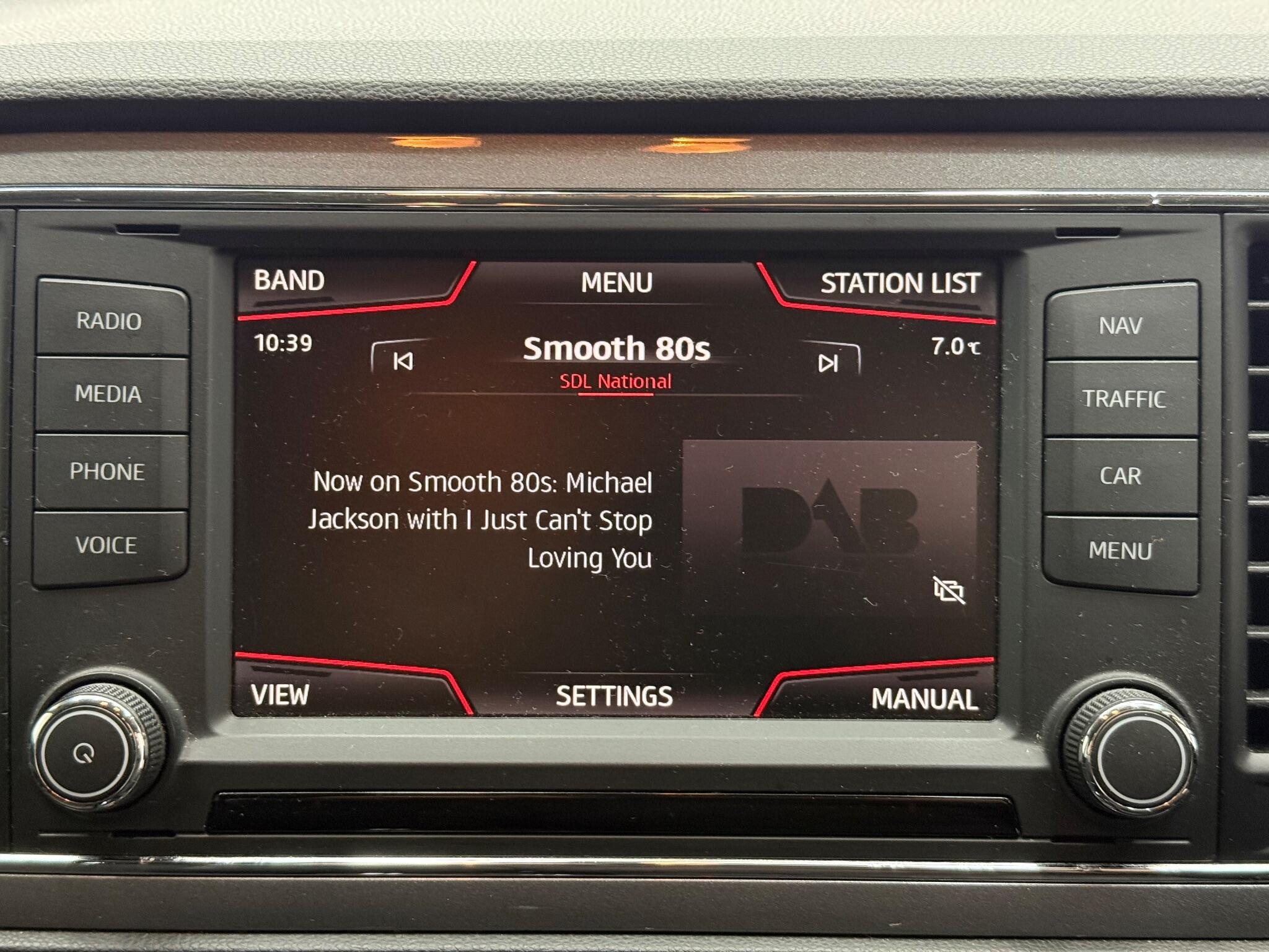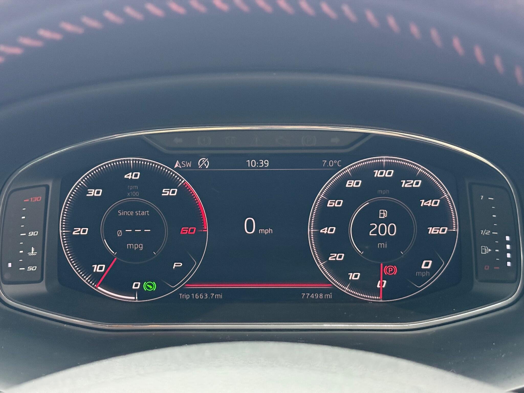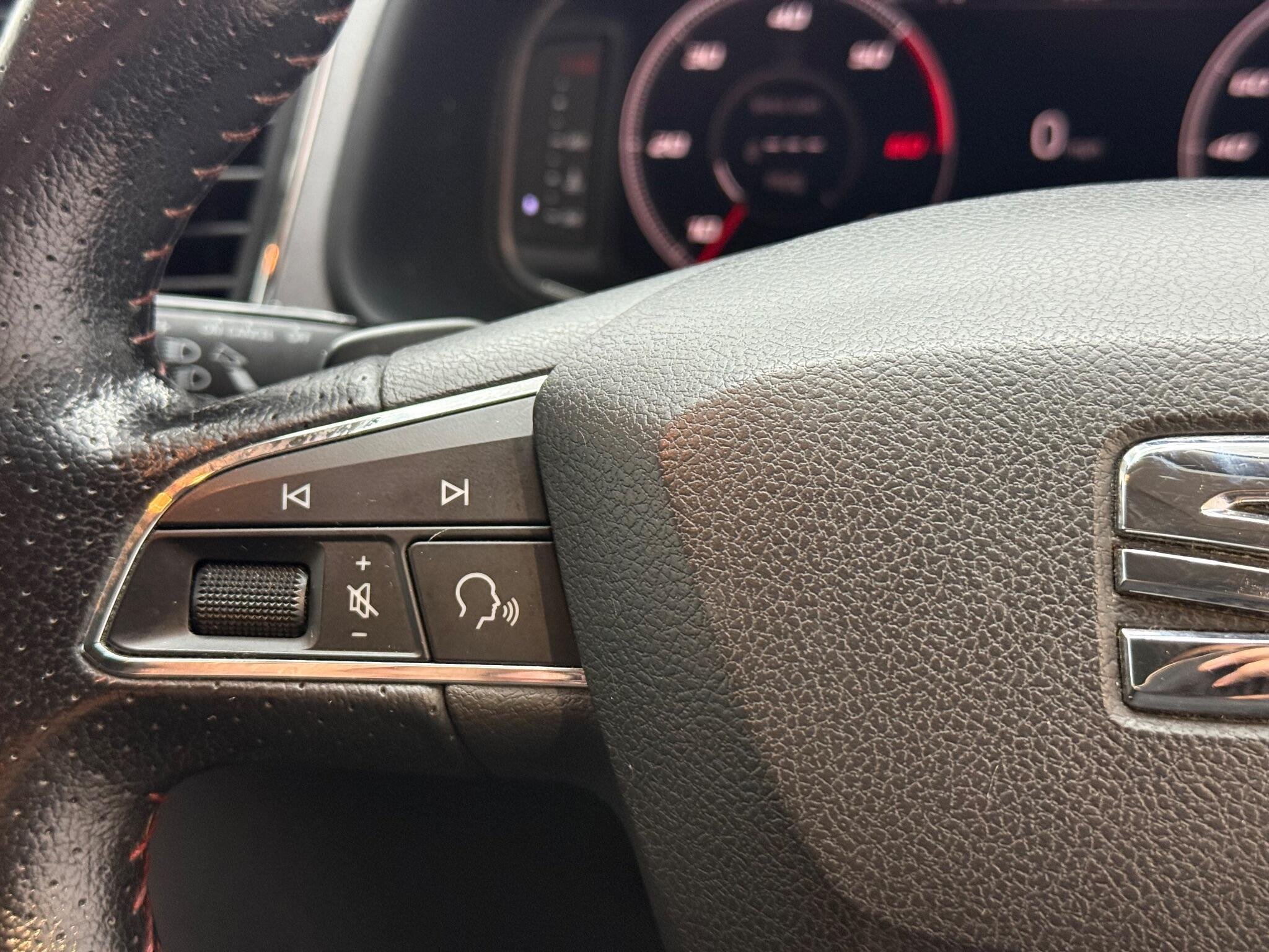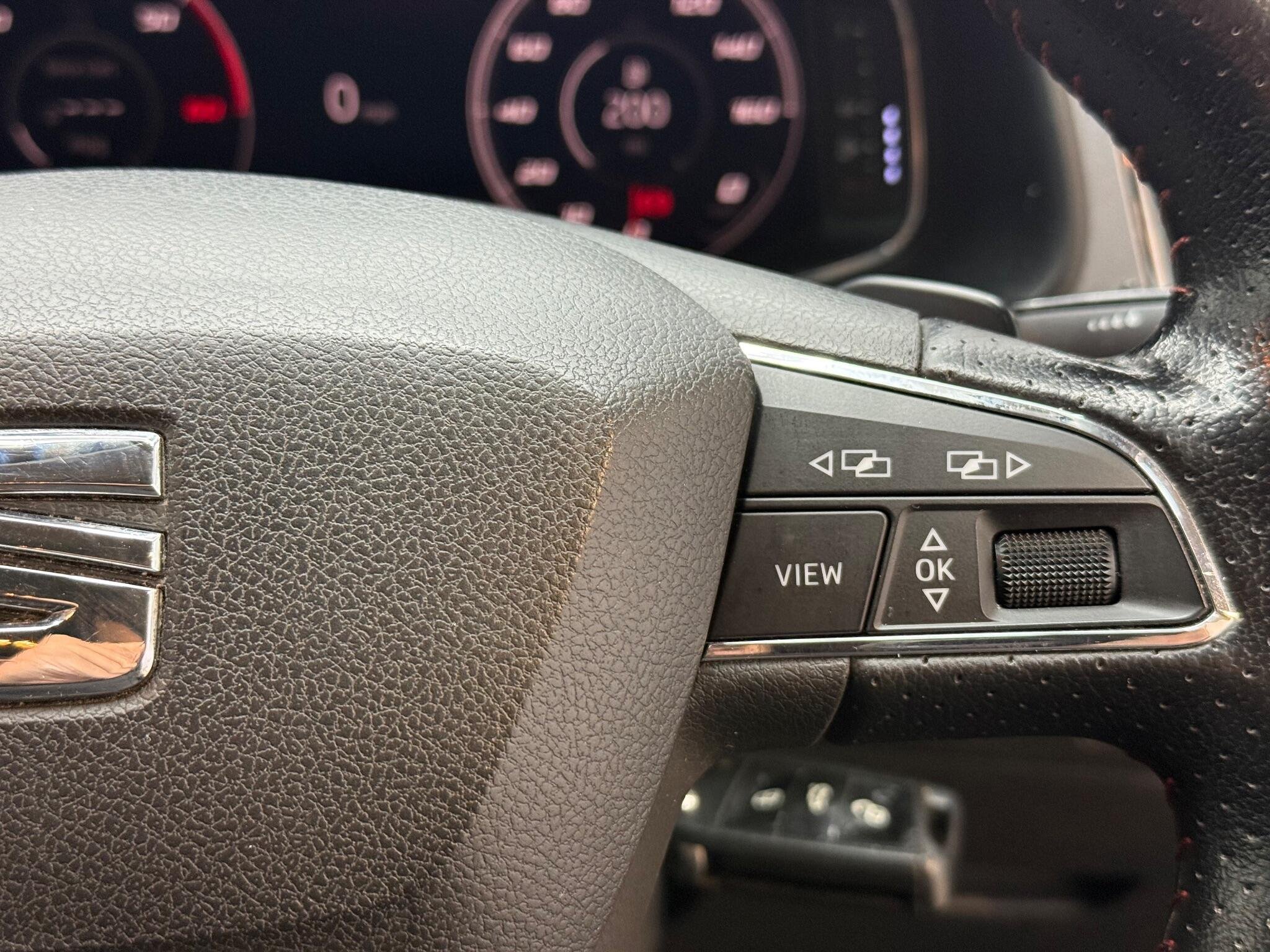 - Steering Wheel - Flat-Bottomed Perforated Leather with Red Stitching and FR Logo
