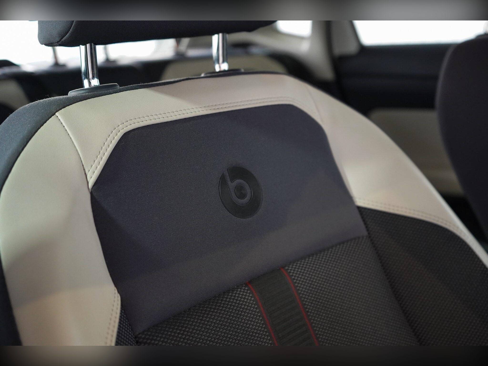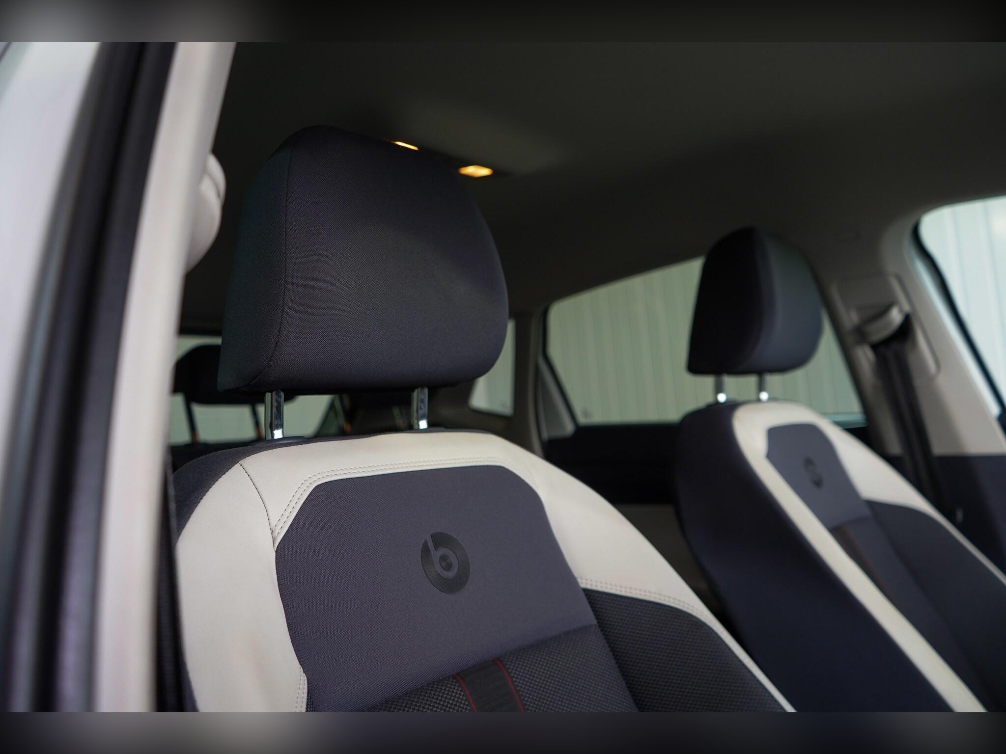 Front Sports Seats with Height Adjustment and beats Logo on Rear Seat Backrest